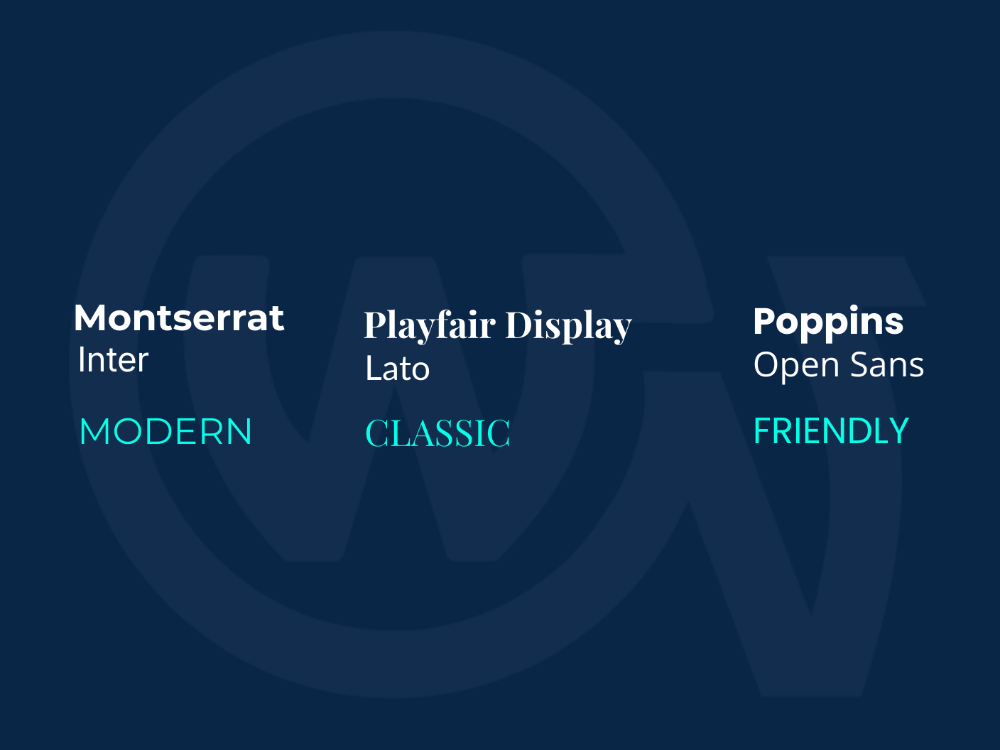 - H2 and H3 (Section headings): Same family as H1 or a harmonious pairing, slightly smaller.