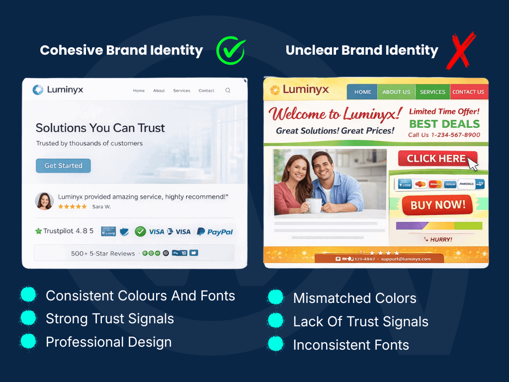 For online businesses specifically, this matters more than it does for physical shops. A brick-and-mortar store gets body language, tone of voice, and a physical environment to build trust. Your website gets a few seconds and a screen. Every visual and verbal decision you make either builds confidence or undermines it.
