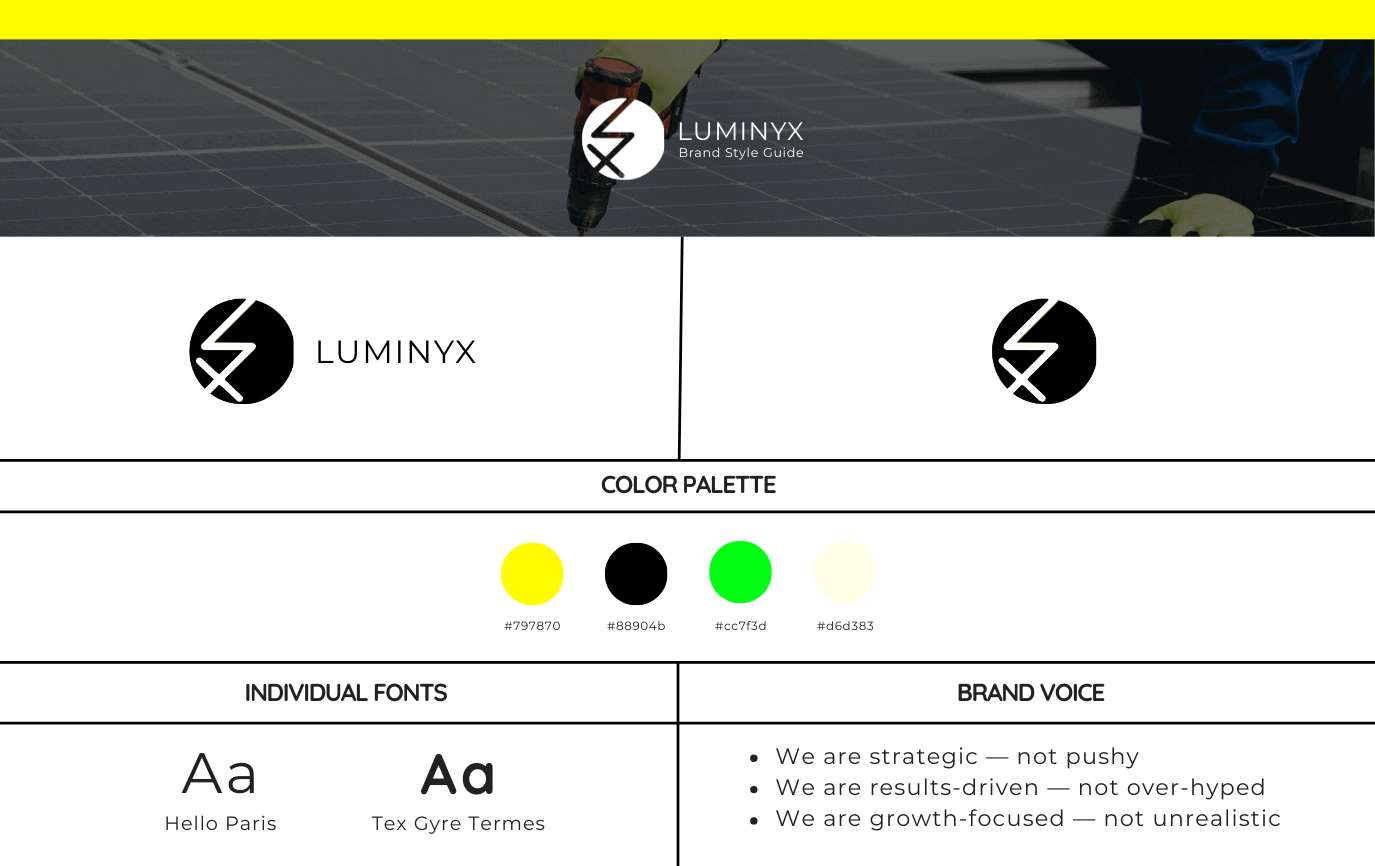 A brand style guide is a document that captures all of your brand identity decisions in one place. You do not need a 60-page agency document. A one-to-three page guide is enough for most new businesses.